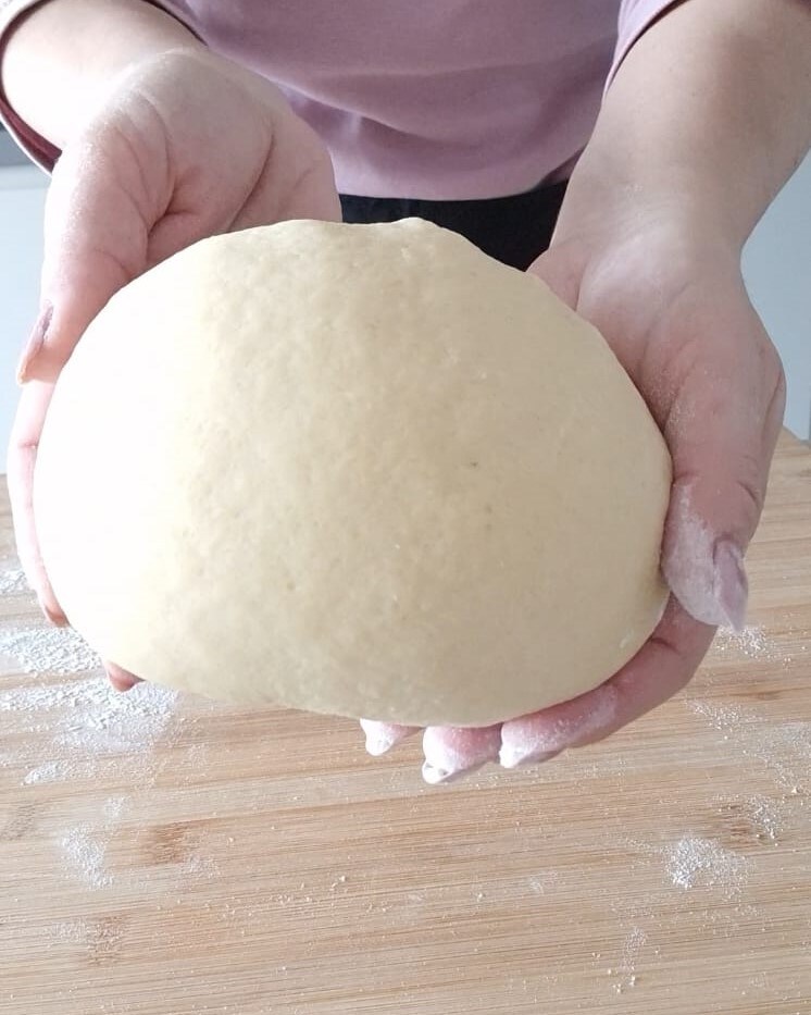 Una vez compactado todo, transfiere a la superficie de trabajo y amasa hasta obtener una mezcla suave y compacta.
