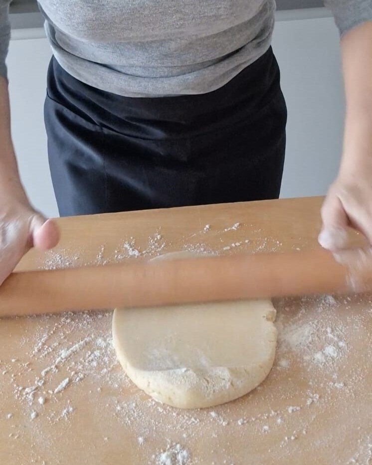 Después del tiempo de reposo de la masa quebrada divididla en dos, y extended los 2 discos con un grosor de poco menos de 1 cm.