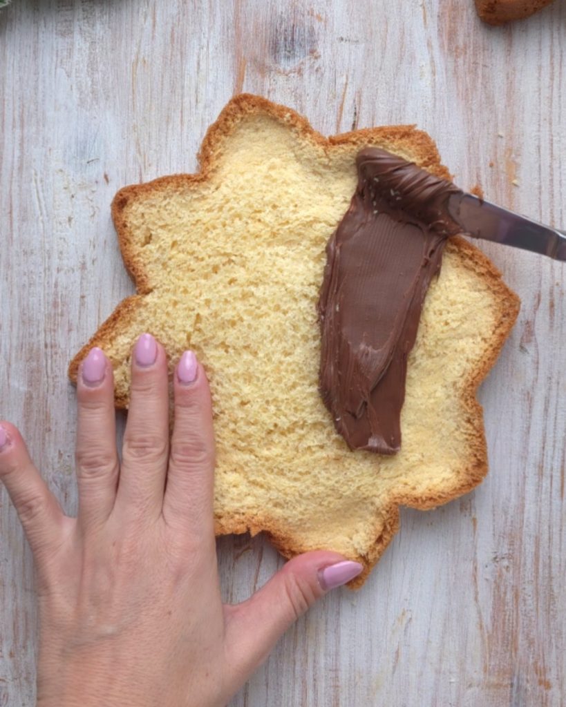 Rellena con Nutella solo la mitad de la rebanada de pandoro.