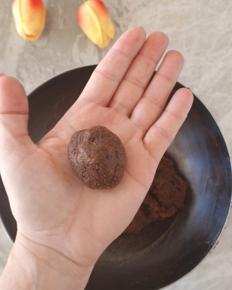 En este punto, toma pequeñas porciones, del tamaño de una nuez, y ruédalas en las manos formando así muchas pequeñas bolitas.