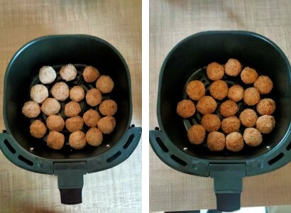 – Si no tienes freidora de aire, coloca las albóndigas en la bandeja del horno forrada con papel de horno, unta con aceite y cocina en horno caliente a 200°C durante unos 10′.