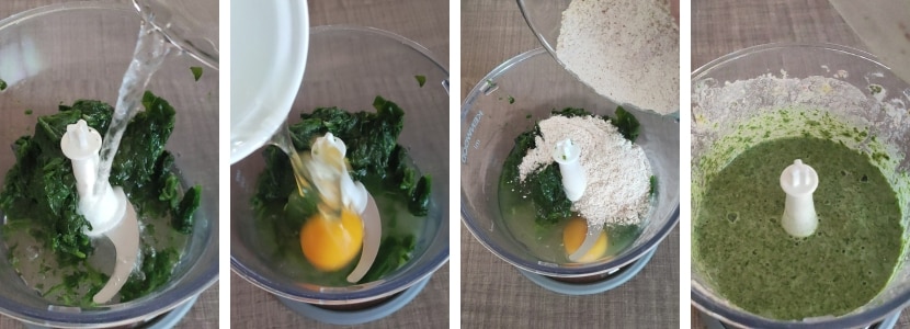 Para realizarlas, he usado las espinacas congeladas que tenía en el congelador y que he escaldado en la sartén con un poco de agua y, en lugar de usar harina 00, he preferido la integral que les da aún más sabor.