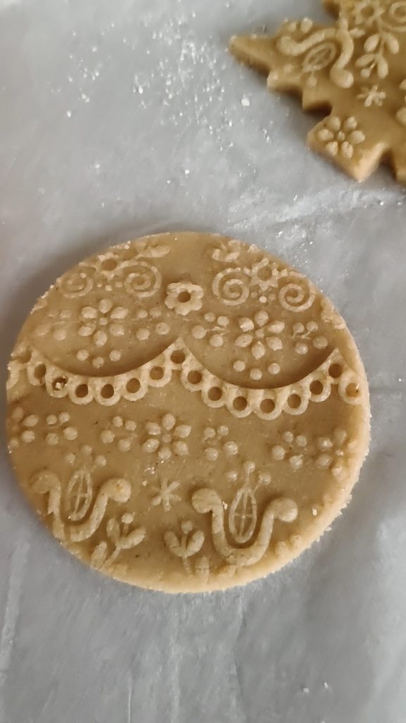• Si no tienes los moldes de madera, consigue un rodillo decorativo, extiende la masa siempre a 3 mm, ponla 10 minutos en la nevera y luego pasa el rodillo decorativo.
