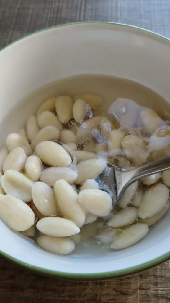 Poner a remojo las almendras en agua, durante una noche.
