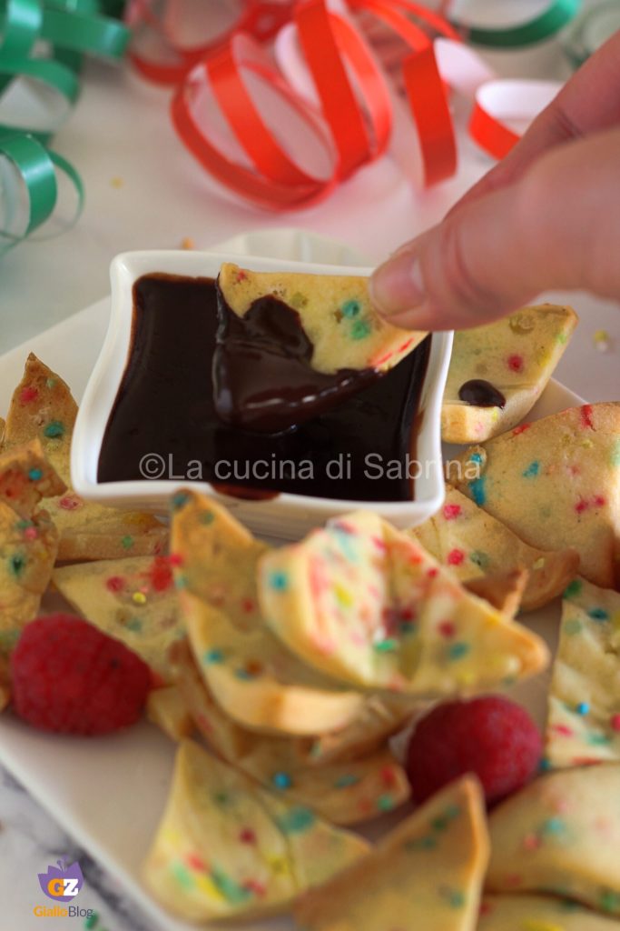 A base de masa quebrada a la que vamos a añadir antes de extender la masa las perlitas de azúcar de colores conocidas como mompariglia, los nachos dulces de Carnaval se vuelven más deliciosos si se acompañan de crema de untar o mermeladas.