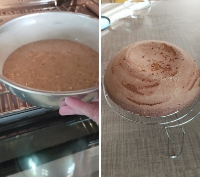 – Verter la mezcla en el molde engrasado y enharinado y hornear durante unos 40′ – siempre vale la prueba del palillo. Fuera del horno, esperar unos minutos y luego volcar el dulce sobre una rejilla para dejarlo enfriar.