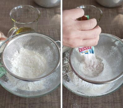 – Tamizar la harina, la fécula y la levadura para postres y reservar.