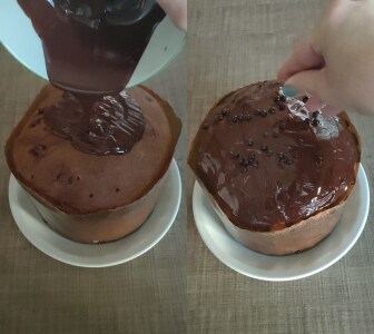 – Cuando el panettone rápido esté completamente frío, glasearlo con el chocolate previamente derretido y templado y decorar con azúcar glas.