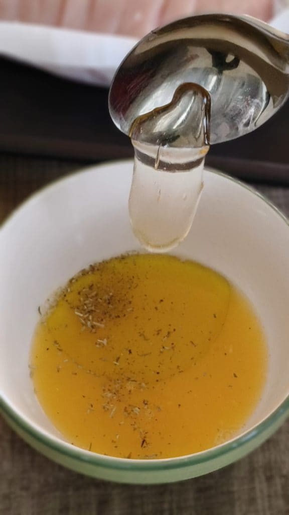 Verter la emulsión sobre las pechugas de pollo, dejando aparte un par de cucharadas.