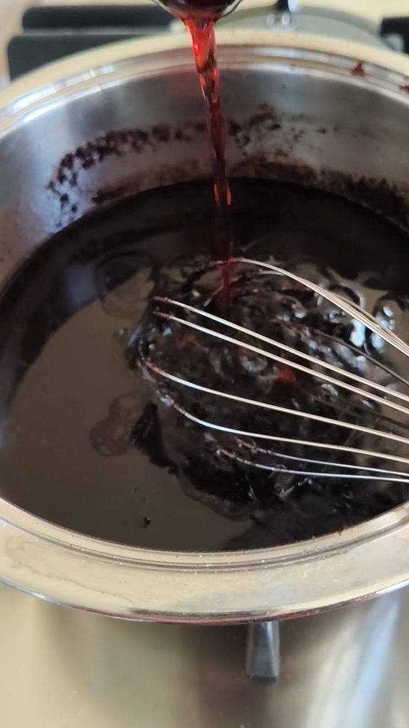 Vierte el vino tinto (40 ml) 2 min – 80°C – vel 2 y luego el chocolate.