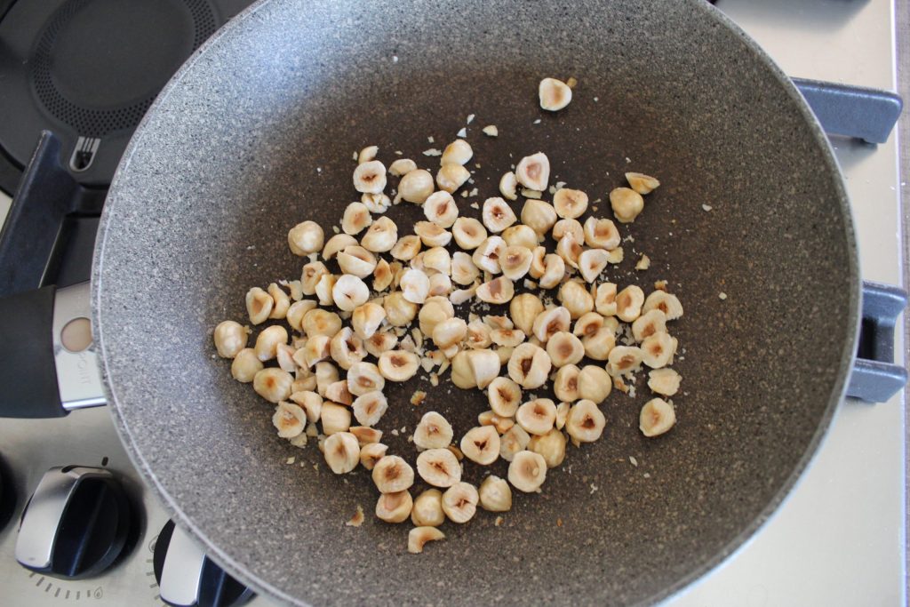 • – Tostar ligeramente las avellanas en una sartén a fuego medio durante unos minutos, y dejarlas enfriar un poco.