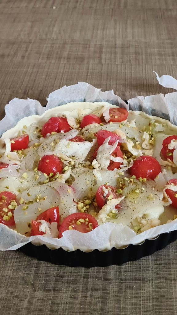 Tarta salada de hinojo: un plato sencillo pero lleno de sabor, perfecto para cualquier ocasión. Esta tarta salada, que combina el delicado sabor del hinojo con la frescura de los tomatitos, está envuelta en una masa de hojaldre ligera y crujiente y sazonada con excelente scamorza ahumada. Fácil de preparar, ideal como entrante o plato único, es perfecta también para un picnic al aire libre.