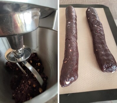 – Amasar rápidamente todos los ingredientes y formar dos cilindros.