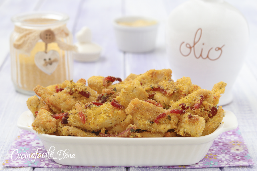 Los bocaditos de pollo y speck gratinados al horno se conservan en la nevera un par de días. En lugar de harina de maíz, puede usar pan rallado. Puede reemplazar el speck con panceta.