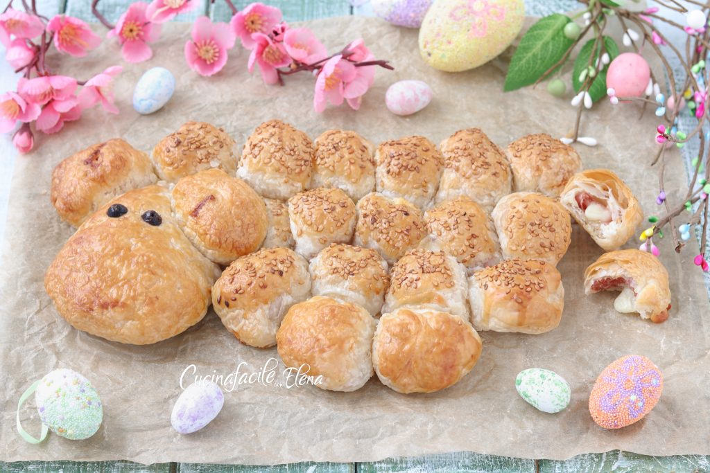 El cordero salado de hojaldre es un rustico fácil, rápido, bonito y riquísimo, un entrante de Pascua fácil y espectacular que os hará quedar de maravilla con poco. Ya la Pascua está a la vuelta de la esquina, por eso os proponemos un entrante para preparar al vuelo sin moldes ni cortadores, con pocos y sencillos ingredientes, perfecto también como centro de mesa. El cordero de hojaldre se puede rellenar con los ingredientes que prefiráis, también en versión vegetariana con verduras, es fundente, crujiente y deliciosísimo, perfecto para compartir con vuestra familia, amigos y familiares.