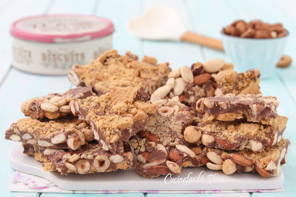 El crujiente de galletas y chocolate es un postre súper goloso y muy chocolatoso, muy sencillo y rápido de preparar. La Pascua ya ha pasado y seguro que os ha sobrado chocolate de los huevos de Pascua; yo, para reciclar un poco, he querido preparar este delicioso postre con frutos secos variados, añadiendo también unas galletas que tenía por consumir. ¿El resultado? Un dulce sencillo, crujiente y apetecible, perfecto para el desayuno, la merienda o como snack, ¡realmente delicioso!