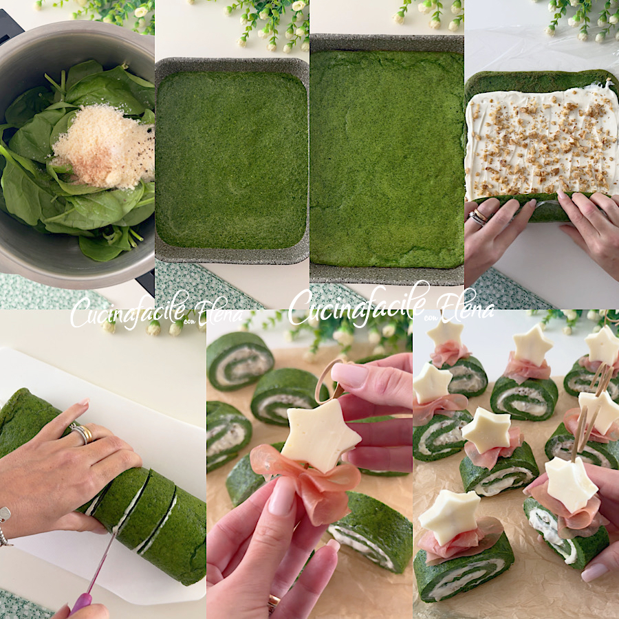 Los rollitos de tortilla de espinacas son una receta facilísima, muy rápida e ingeniosa, perfecta tanto como aperitivo o segundo plato. Nos acercamos a la Navidad y al Año Nuevo, ya os he dado muchas recetitas, ideas y sugerencias deliciosas para realizar platos sabrosos, con poco y en pocos minutos y, hoy, he preparado este delicioso rollo que se prepara en un instante, con un procesador de alimentos, sin siquiera cocinar antes las espinacas, para la Nochebuena o la cena de fin de año las tortillas nunca faltan en mi mesa de fiestas y he pensado hacerlo de manera diferente, preparando unos rollitos que luego decoré con bresaola y estrellitas de queso. Los rollitos de tortilla de espinacas son suaves, sabrosos y con un relleno crujiente y cremoso, ¡perfectos como aperitivo para las fiestas o para un aperitivo!