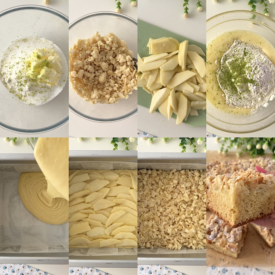 La tarta crujiente de manzanas es muy sencilla y rápida de preparar, primero prepara el crumble, la parte crujiente: en un bol pon la harina, el azúcar, una pizca de sal, la mantequilla en trocitos, la ralladura de limón y mezcla rápidamente con un tenedor, hasta obtener una mezcla desmenuzable, añade las almendras en láminas y resérvalo.