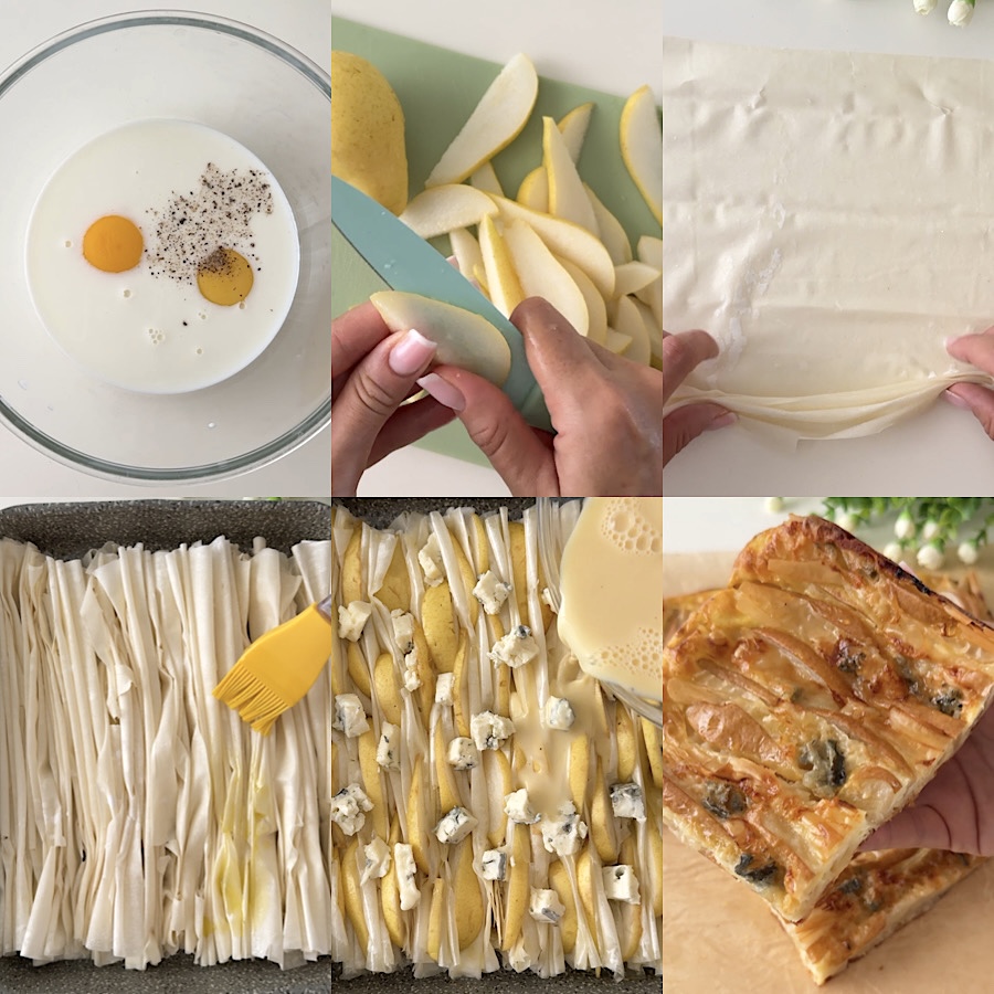 La tarta filo peras y gorgonzola es una tarta salada con la pasta filo rápida y realmente deliciosa. Hace unos días había preparado la tarta filo con peras y chocolate, y, esta vez, quise prepararla en versión salada, usando siempre las peras que recolectamos en el campo. Peras y gorgonzola es una combinación super y os aseguro que esta tarta filo peras y gorgonzola es excepcional, se prepara en 10 minutos y es perfumada, suave y crujiente al mismo tiempo, con una capa de miel que la hace aún más irresistible, perfecta como plato único, aperitivo o segundo plato!