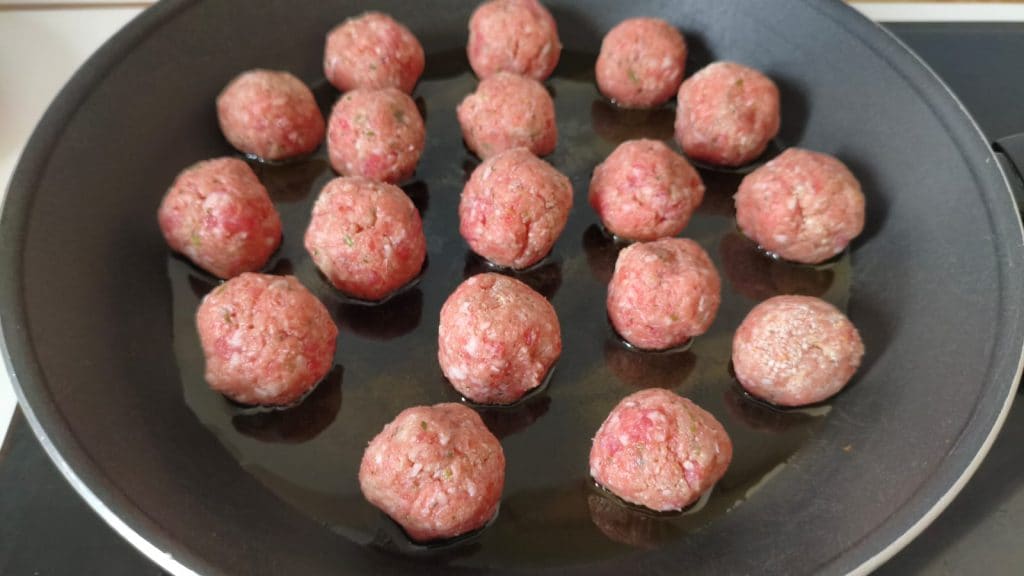 Después de formar todas las albóndigas, calienta un poco de aceite en una sartén grande y cocínalas por ambos lados un par de minutos.