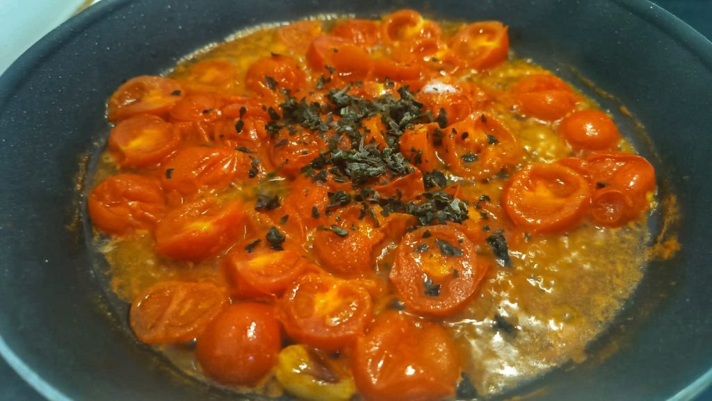 • Añadir los tomatitos y dejar que se impregnen del sabor