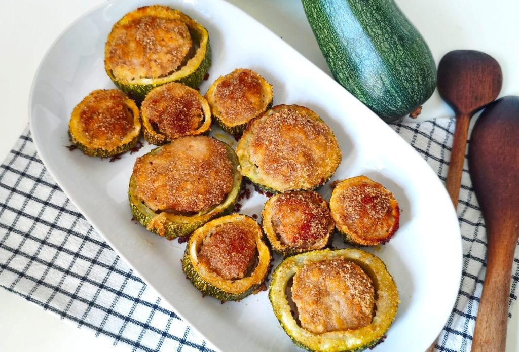 ¡Los calabacines rellenos al horno con carne y salchicha están listos!