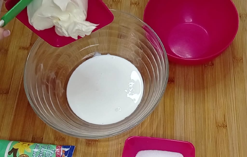 Mientras tanto preparar el relleno uniendo en un bol la nata,