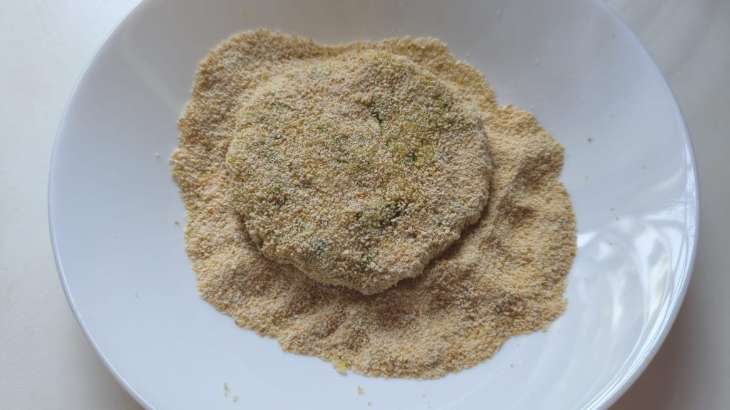 Forma los filetes de calabacín con las manos ligeramente húmedas y pásalos por el pan rallado.
