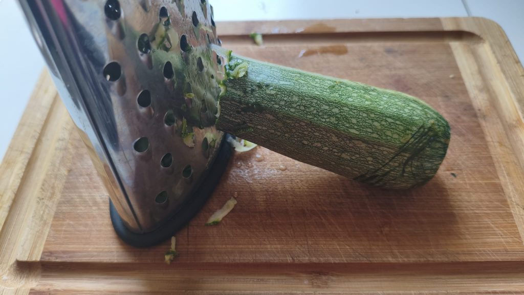Esta receta es realmente sencilla: se rallan los calabacines crudos, se añade el pan rallado, un poco de parmesano, un huevo y, para darle un toque especiado y saludable, yo también le pongo una pizca de cúrcuma. Se mezcla todo hasta obtener una mezcla bien homogénea, se forman pequeños filetes… ¡et voilà!