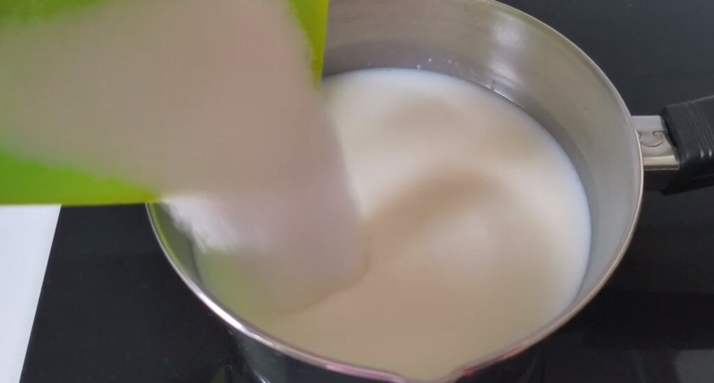 Preparar el arroz. En un cazo, poner la leche y el azúcar.