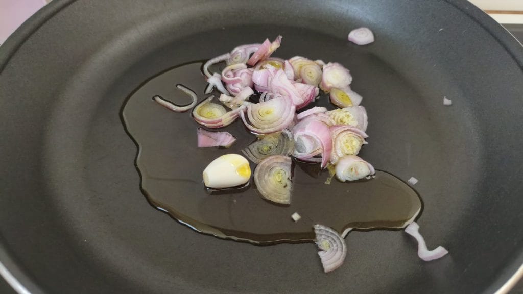 En una sartén con un hilo de aceite freír el ajo y el chalote finamente cortado. Después de un par de minutos añadir las alcaparras picadas y las anchoas.