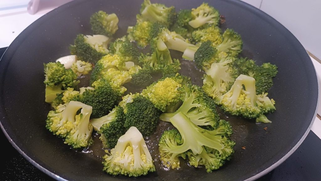 • Escurrir la mitad del brócoli y dejar que tome sabor en la sartén