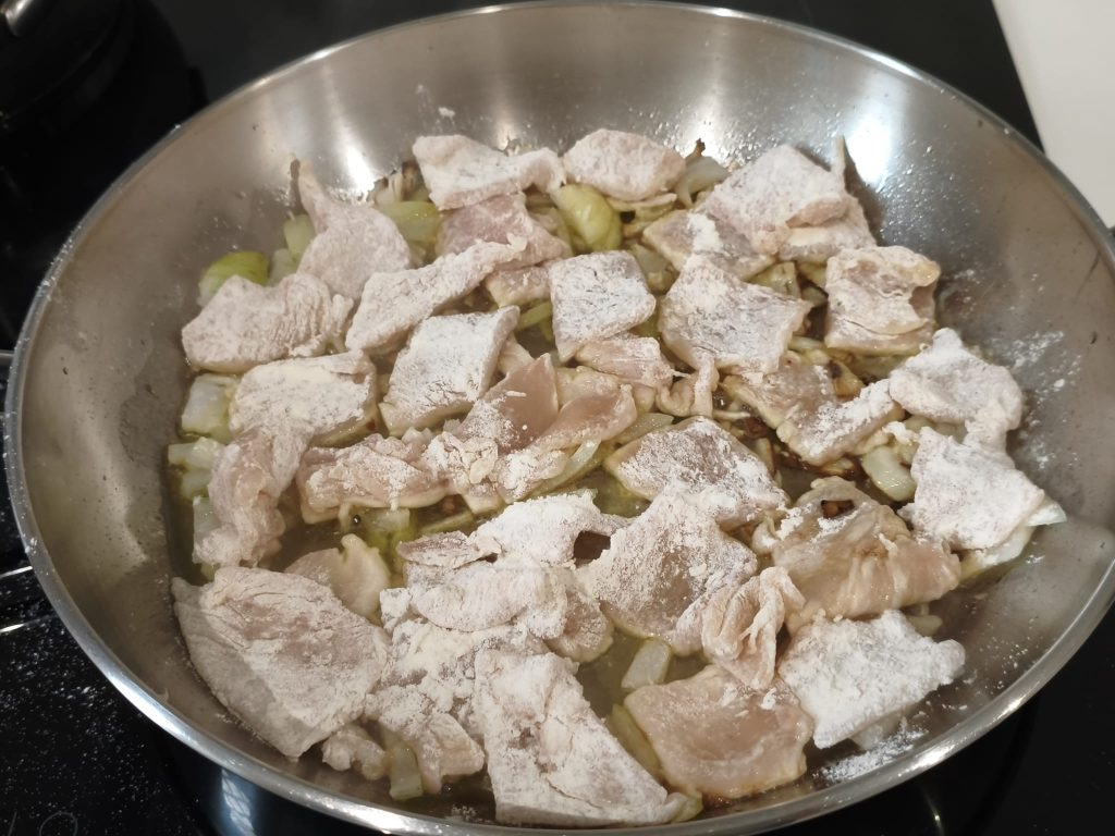 Variante light: si quieres una versión más ligera, puedes evitar la harina y cocinar el pollo directamente con cebolla y un chorrito de aceite.
