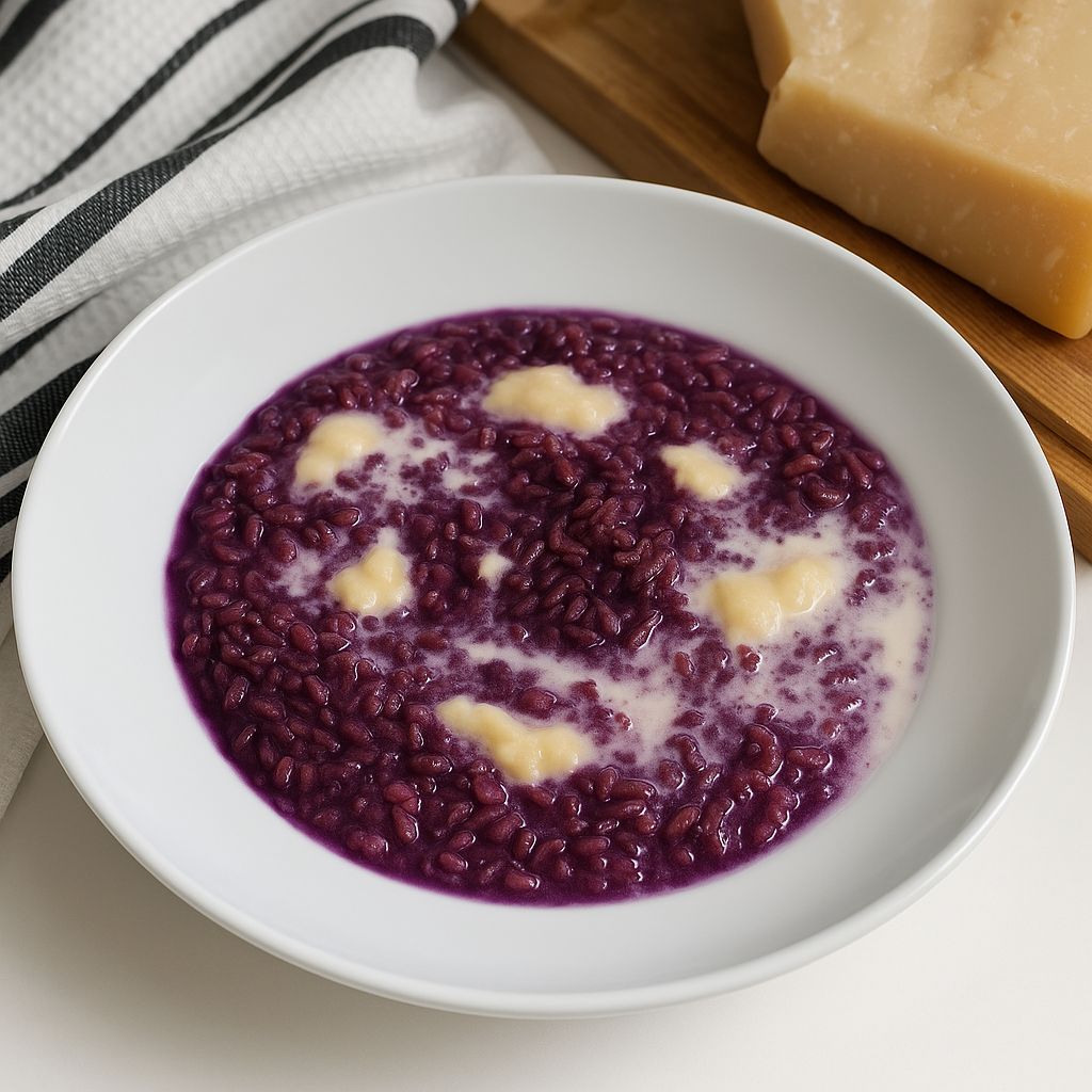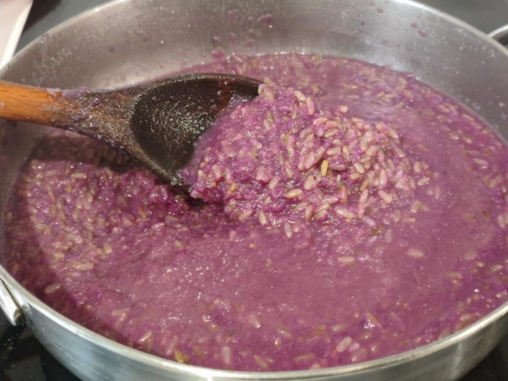 El resultado es un risotto cremoso, fragante y de un color violeta brillante que sorprenderá a cualquiera.