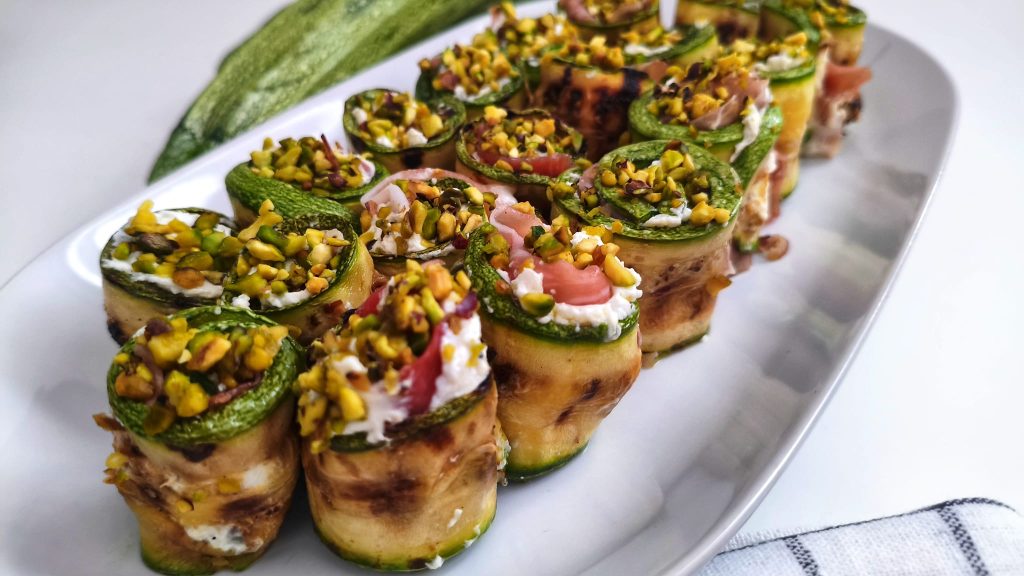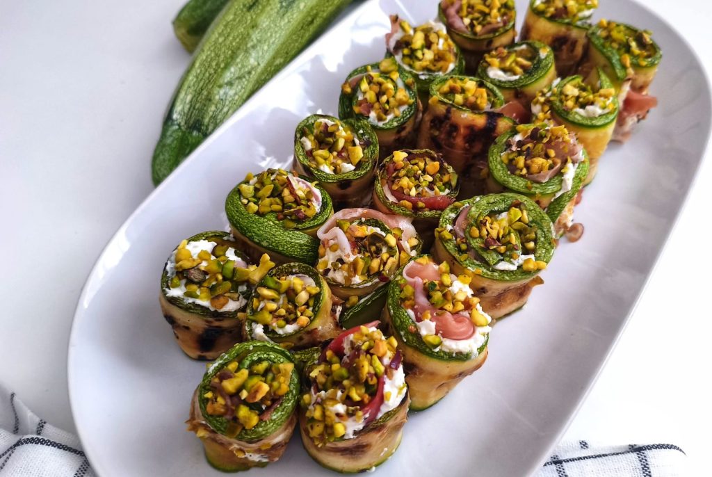 Si quieres sorprender a tus invitados con un plato original y delicioso, estos rollitos de calabacín con speck, Philadelphia y pistachos son la elección perfecta.