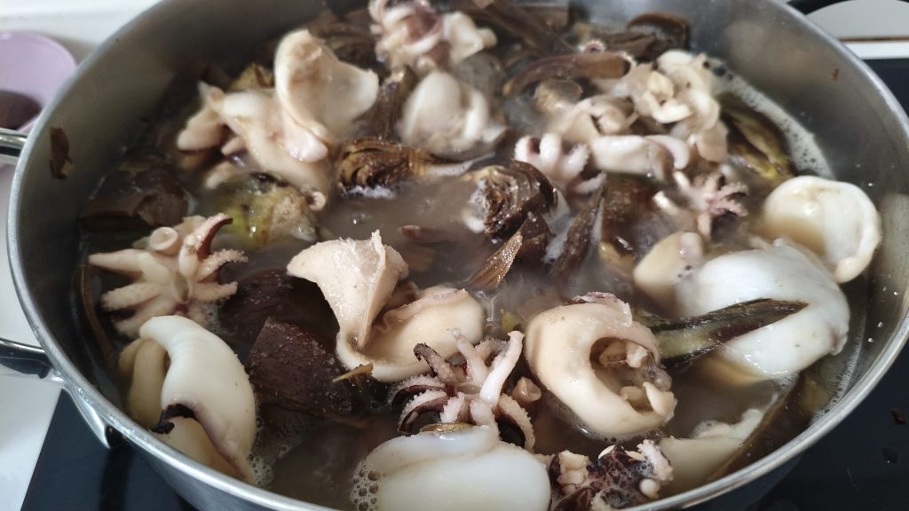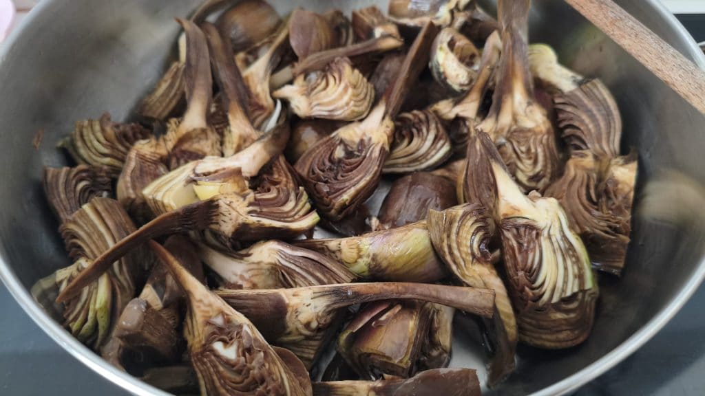 La preparación es sencilla y al alcance de todos: las sepias se cortan en trozos, mientras que las alcachofas frescas se limpian y se cortan en rodajas. El ajo dorado en aceite de oliva virgen extra libera todo su aroma, enriqueciendo la base del plato. La cerveza, utilizada para desglasar, aporta una ligera nota maltosa que se casa a la perfección con el sabor de las sepias y las alcachofas, haciéndolos increíblemente tiernos y sabrosos.