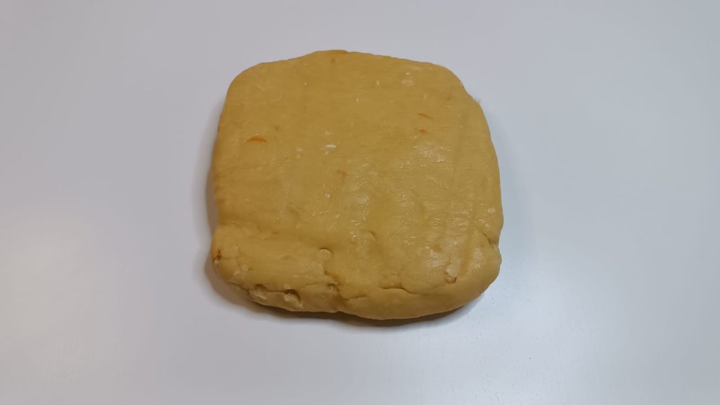 Comenzar haciendo la masa quebrada que deberá reposar en la nevera: unir la mantequilla con la cáscara de naranja y mezclar.