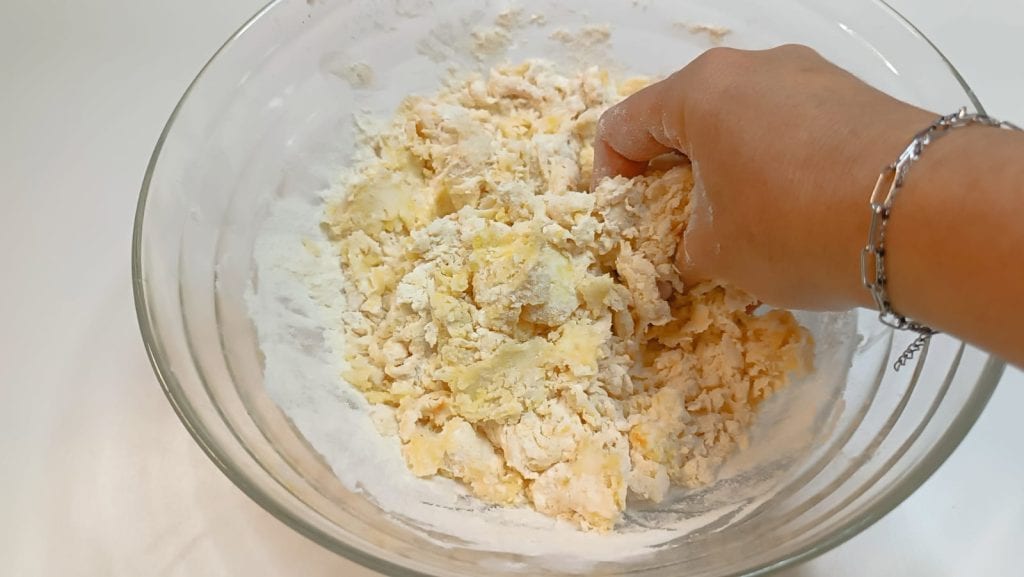 Posteriormente unir la harina y amasar rápidamente.