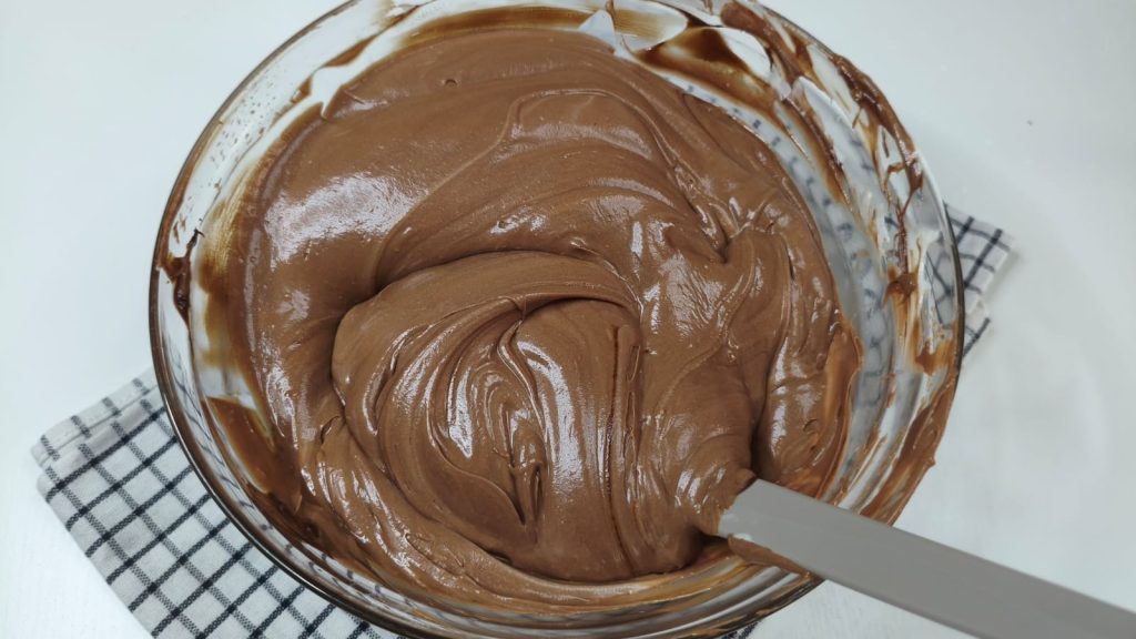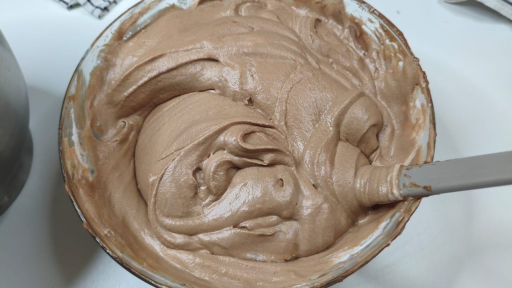 Mezcla de abajo hacia arriba para no desmontar la nata y reserva unos 200 ml para la decoración.