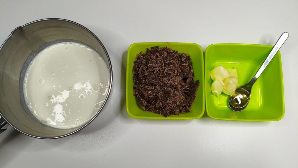 Añadir la nata caliente y derretir el chocolate removiendo con un batidor o una espátula hasta obtener un glaseado homogéneo y brillante. Verter sobre la Tarta Susanna fría y nivelar bien.