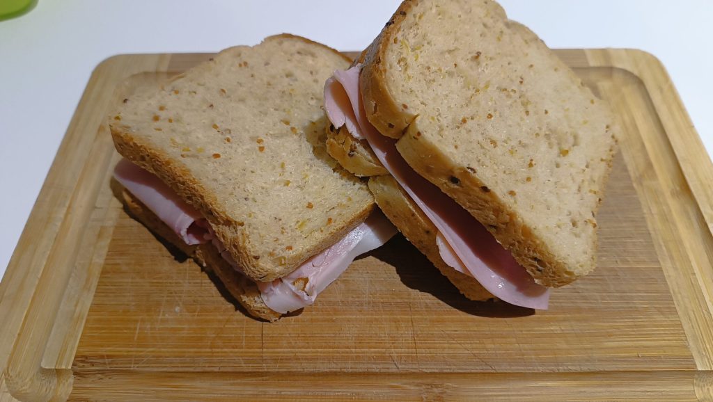 Colocar dentro del pan de molde una loncha de jamón doblada en dos