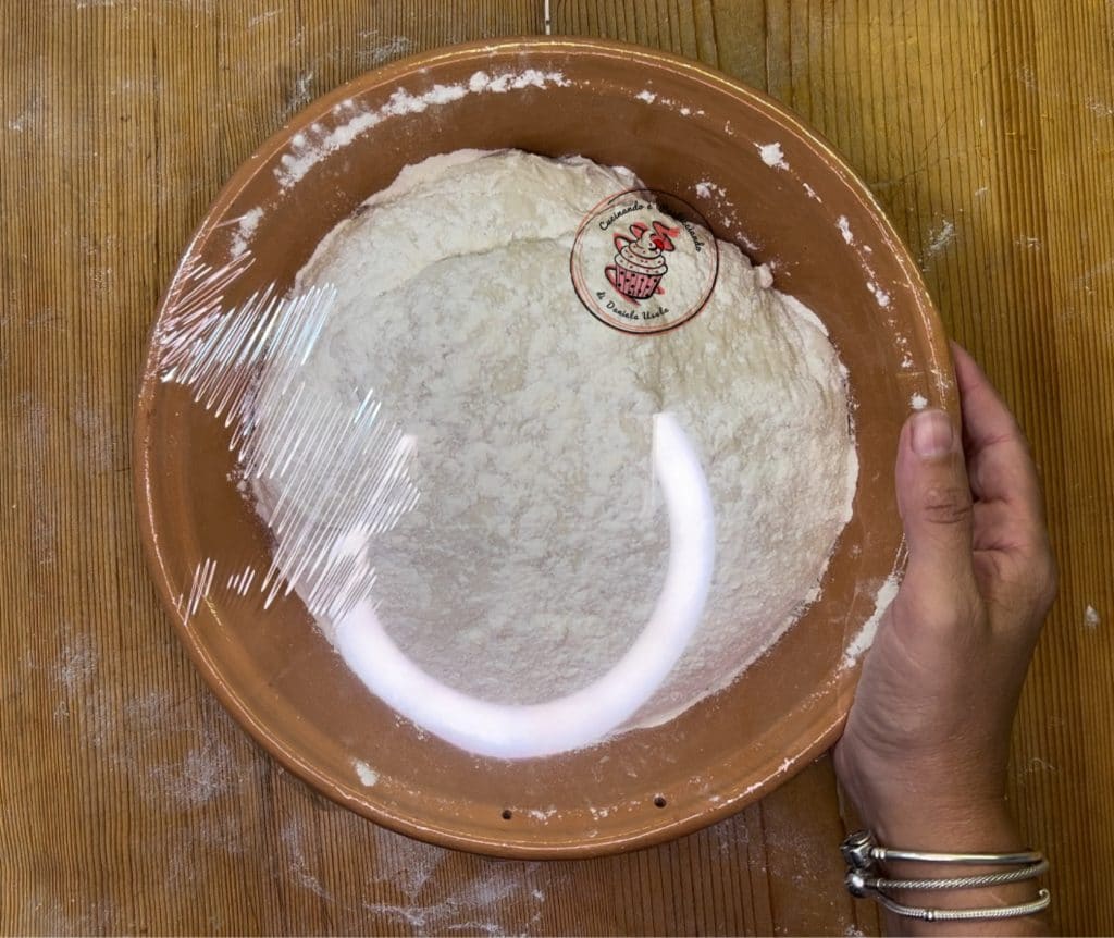 Formar una bola y dejar levar en el bol hasta que duplique su tamaño.