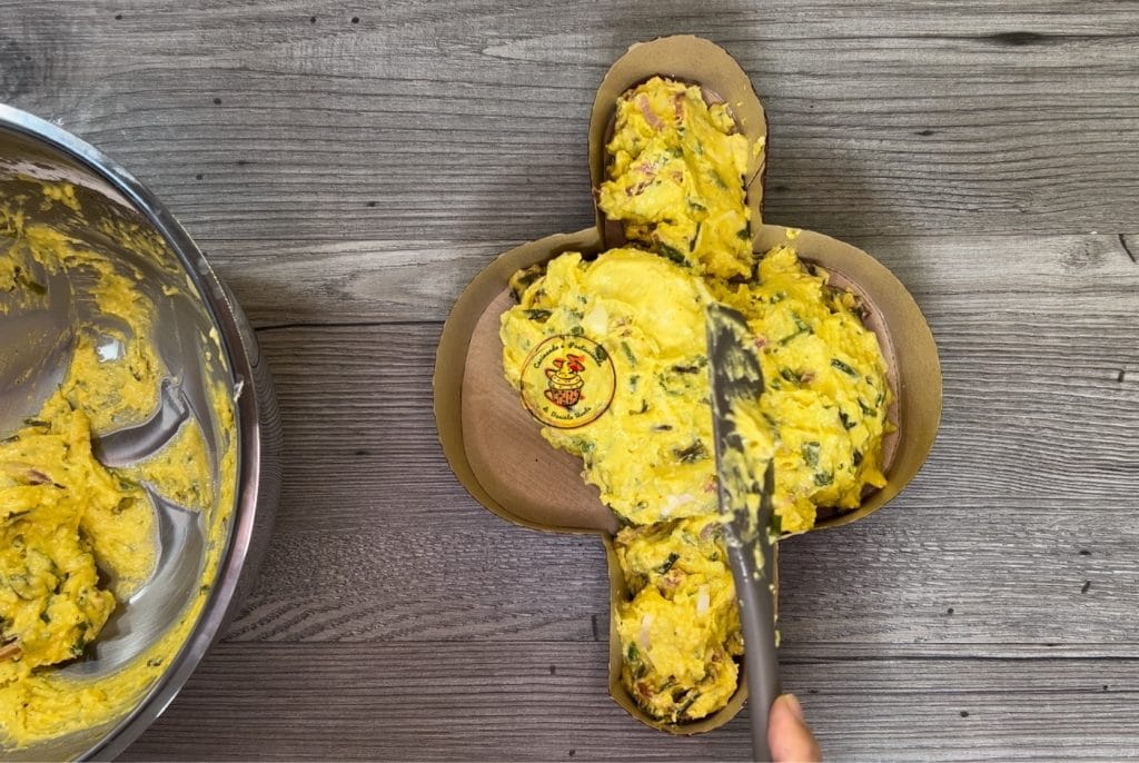 En el recipiente mezclamos los huevos con las especias, el aceite, la leche y la sal.
