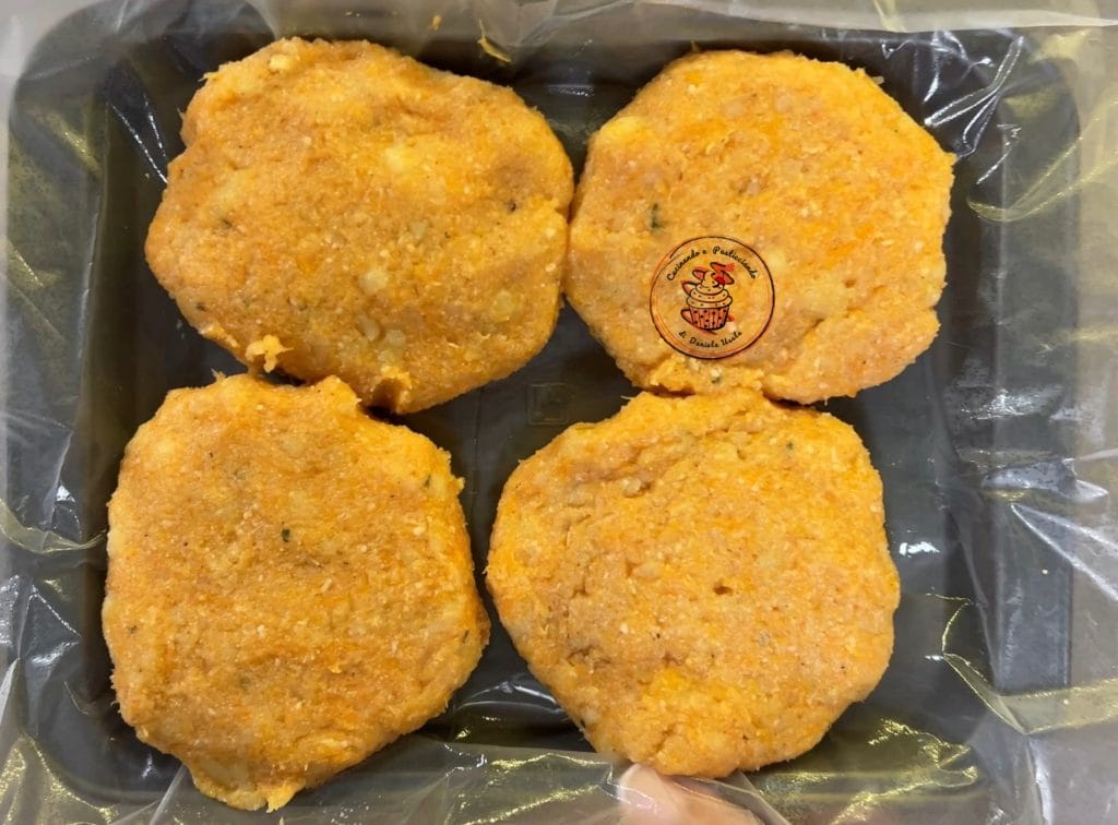• En un bol, verter la calabaza y la patata trituradas. Añadir el huevo, el queso rallado, la sal aromática y el pan rallado triturado con el ajo y el perejil.