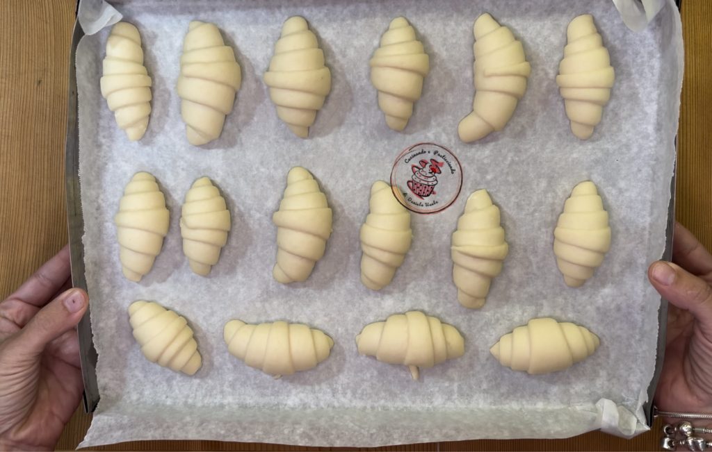 Colocad los croissants en la bandeja de horno, revestida con papel para hornear hasta que dupliquen su tamaño.