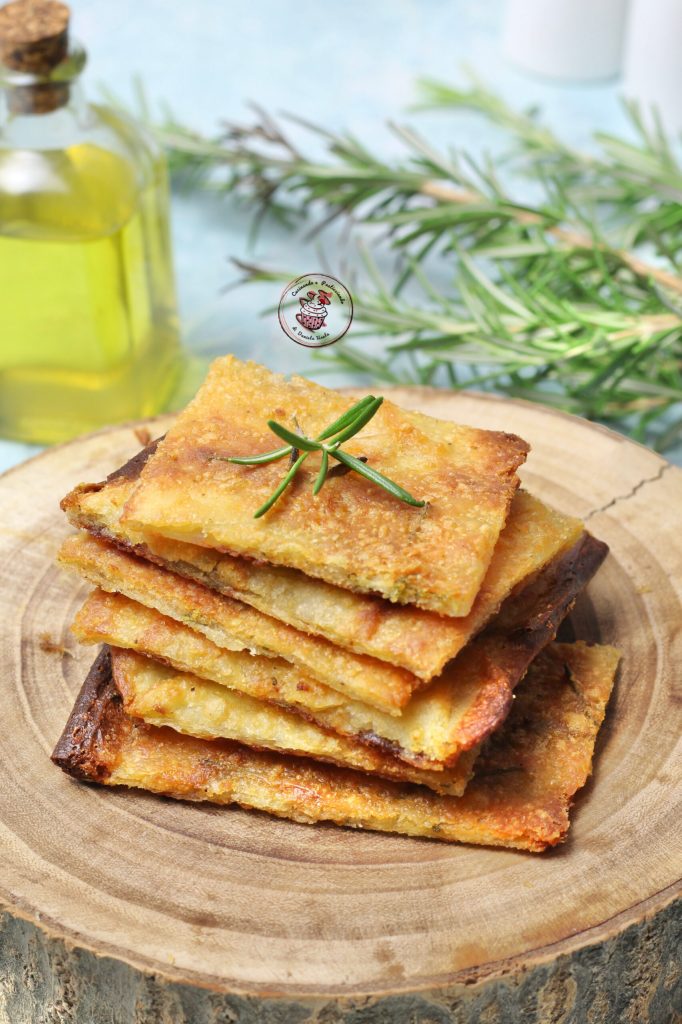 La focaccia con patatas es buenísima, fácil y rápida pero sobre todo bien crujiente, es imposible resistirse. El aroma del romero, en mi opinión, es ese toque extra. Yo para preparar la focaccia de patatas he utilizado la mandolina porque quería las patatas en rodajas, aunque sean delgadísimas, pero si se quiere también se pueden rallar. Es buenísima caliente, pero puedo aseguraros que la focaccia de patatas es excelente también fría.