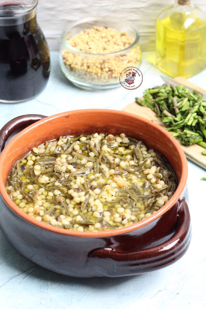 Ya lo sabéis, en mi casa, un ingrediente que nunca falta son los espárragos. Los almacenamos, a principios de primavera, en nuestros innumerables paseos. Aquí en el blog hay muchísimas recetas con espárragos pero hoy he decidido preparar la Fregula sarda. La Fregula sarda con espárragos es un plato muy sabroso y es facilísimo de hacer. Yo he usado la Fregula pequeña, pero si se quiere se puede usar también la mediana.