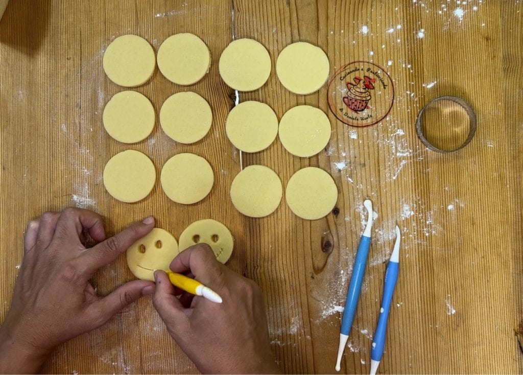 Con los Ball Tool formé los ojos y dibujé la nariz y la boca. Pero solo en la mitad de las galletas. La otra mitad me servirá para la base.