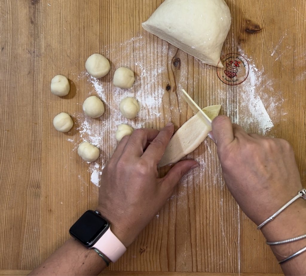 Después del reposo, divide la masa en muchas bolitas pequeñas.