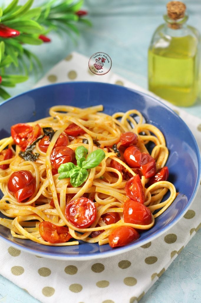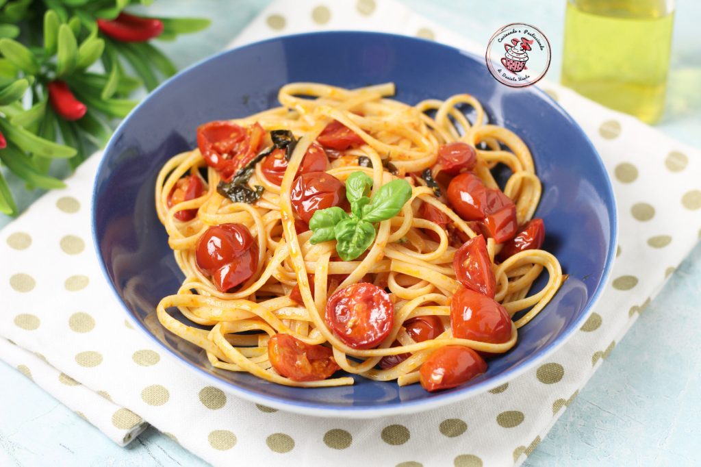 Hoy he preparado uno de los platos veraniegos por excelencia, Linguine con tomate y albahaca. Yo he utilizado los tomates cherry de mi huerto, pero también van bien los tomates datterino. Todo ello perfumado con mucha albahaca fresca. Realmente sabrosos, los tomates dulces y jugosos crean un equilibrio perfecto de sabores. Pruébalos porque son realmente buenísimos. Yo he utilizado linguine, pero también quedan perfectos con espaguetis, incluso la pasta corta se combina perfectamente con este condimento clásico que nunca pasa de moda. Completado con un chorrito de aceite de oliva virgen extra, este plato celebra la cocina italiana en toda su sencillez.